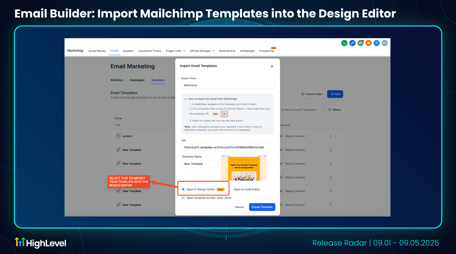 Email Builder: Import Mailchimp Templates into the Design Editor